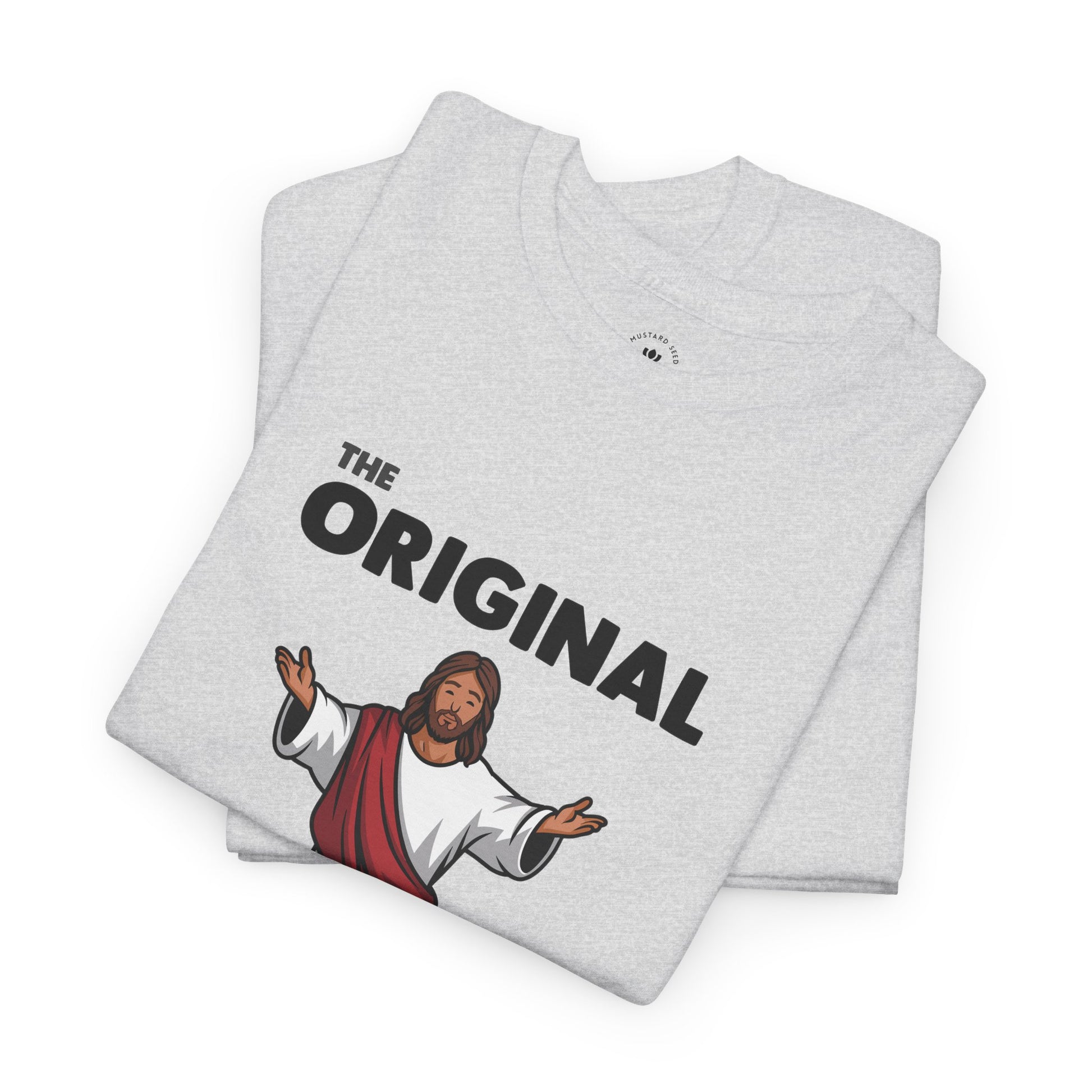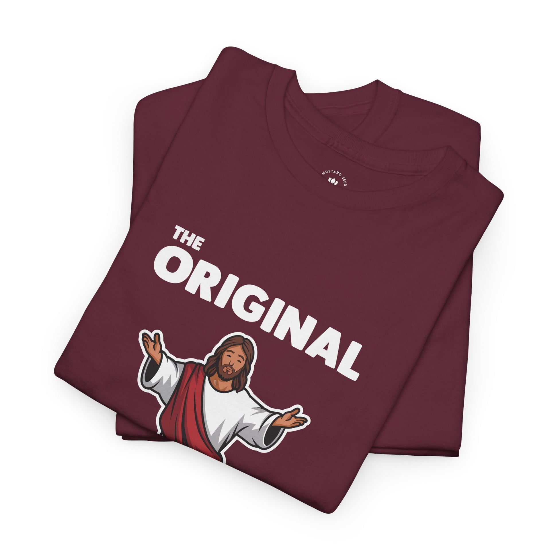 This humorous tee features Jesus standing before a bountiful display of bread, a playful nod to His miraculous feedings of the four and five thousand. It reminds us of His limitless provision and love. Wear it as a conversation starter and a reminder of His incredible acts!