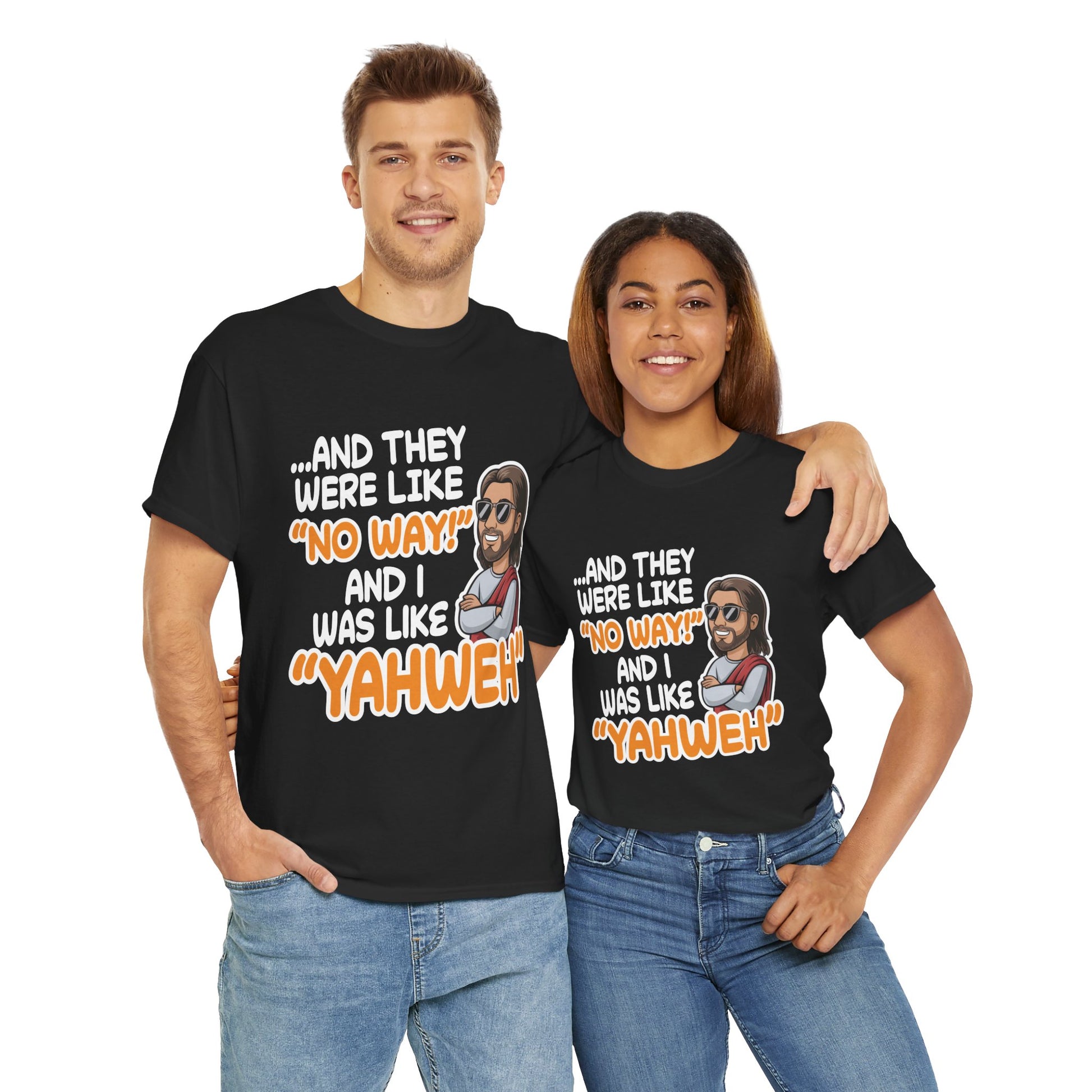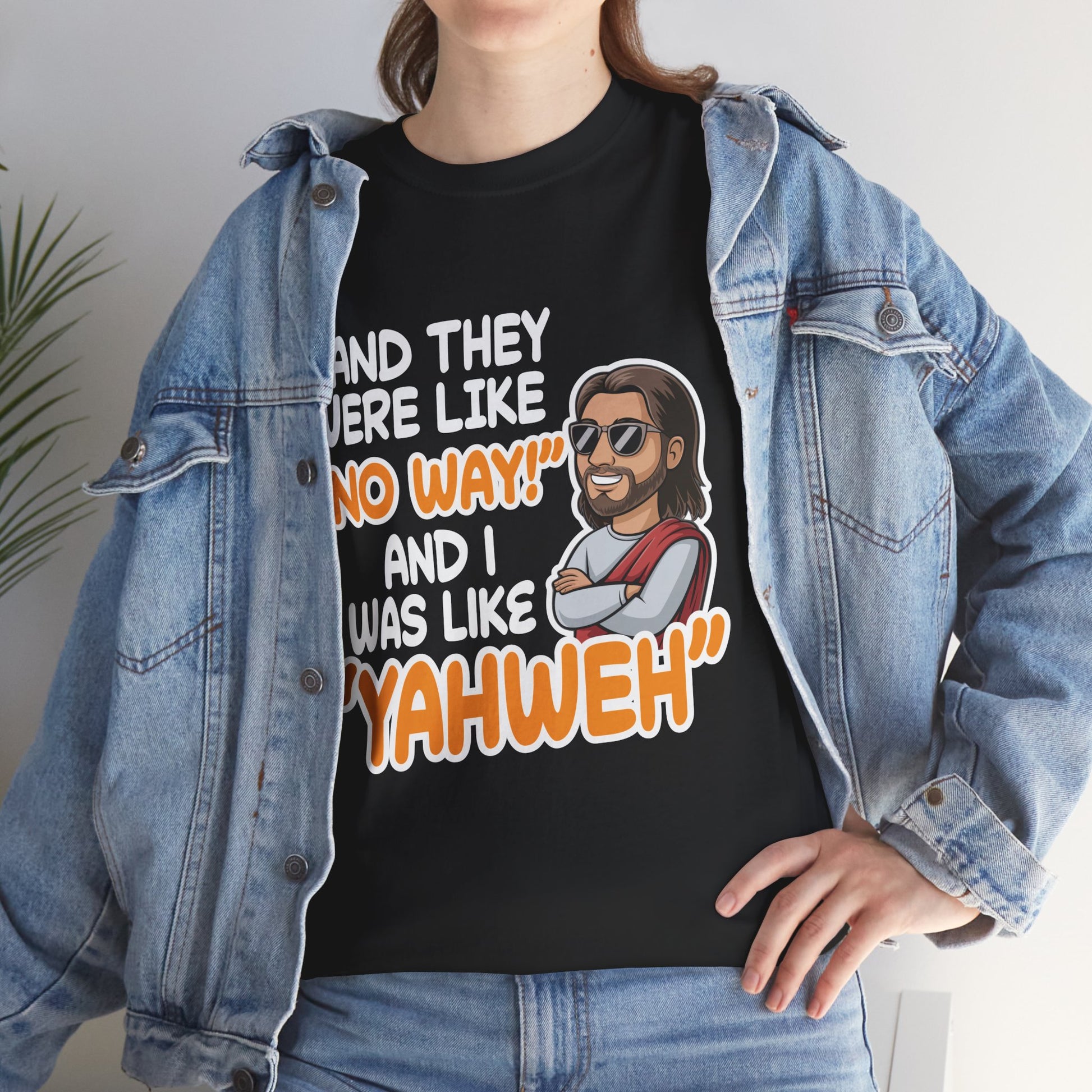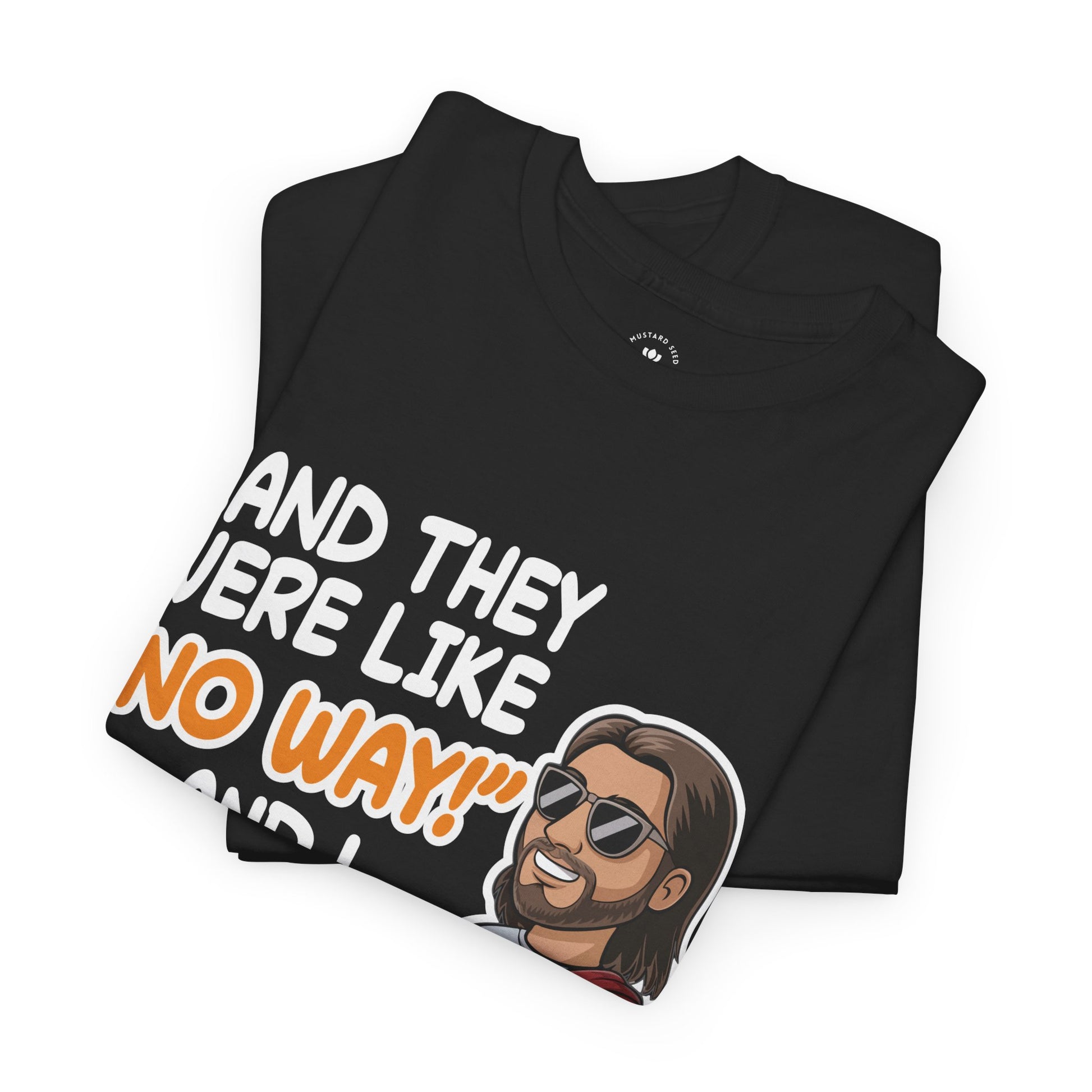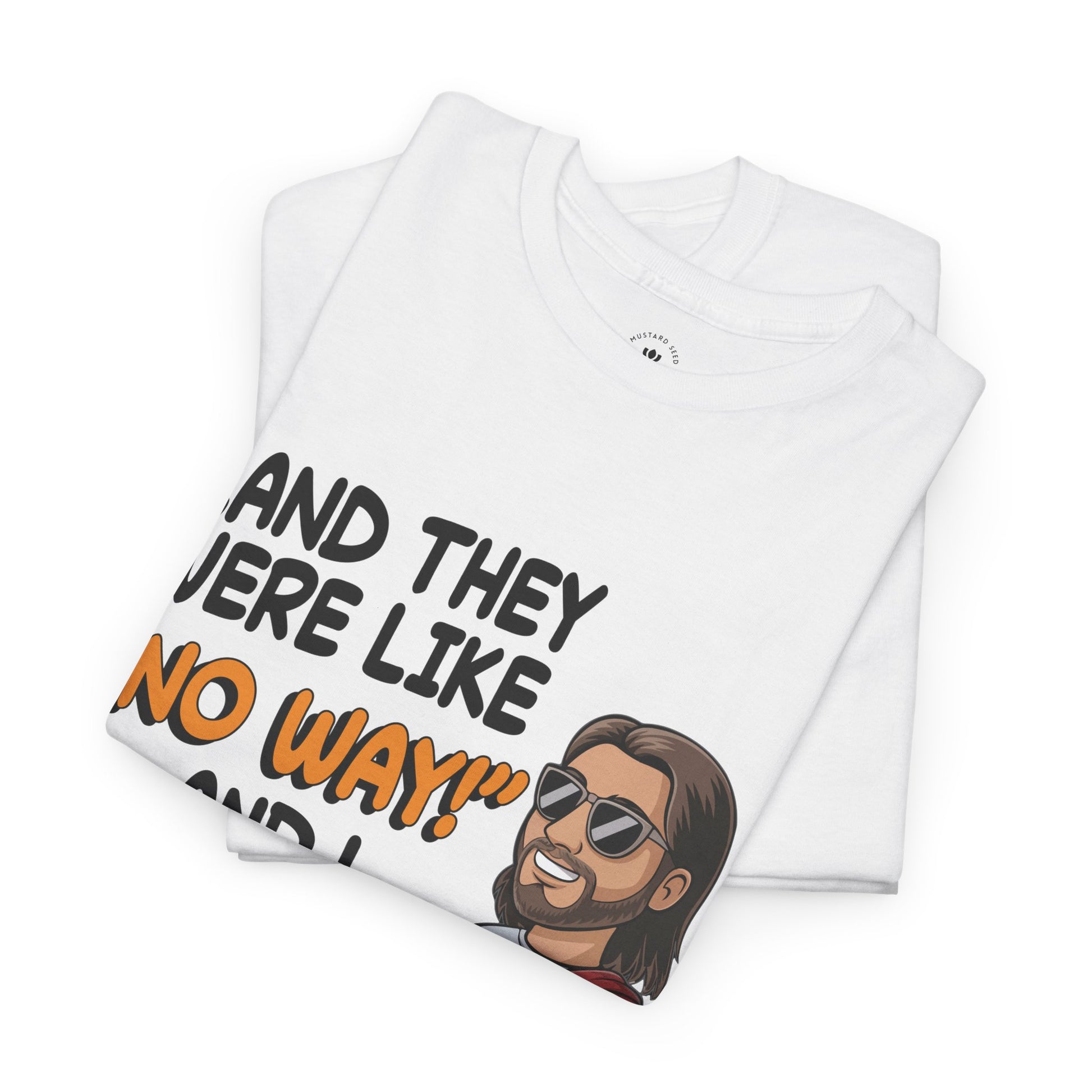 Get ready to spread some smiles with this hilarious tee! The design showcases a cool Jesus with his arms folded, rocking sunglasses for that extra flair. Wear it to church, gatherings, or just out and about—it's sure to spark conversations and laughs!