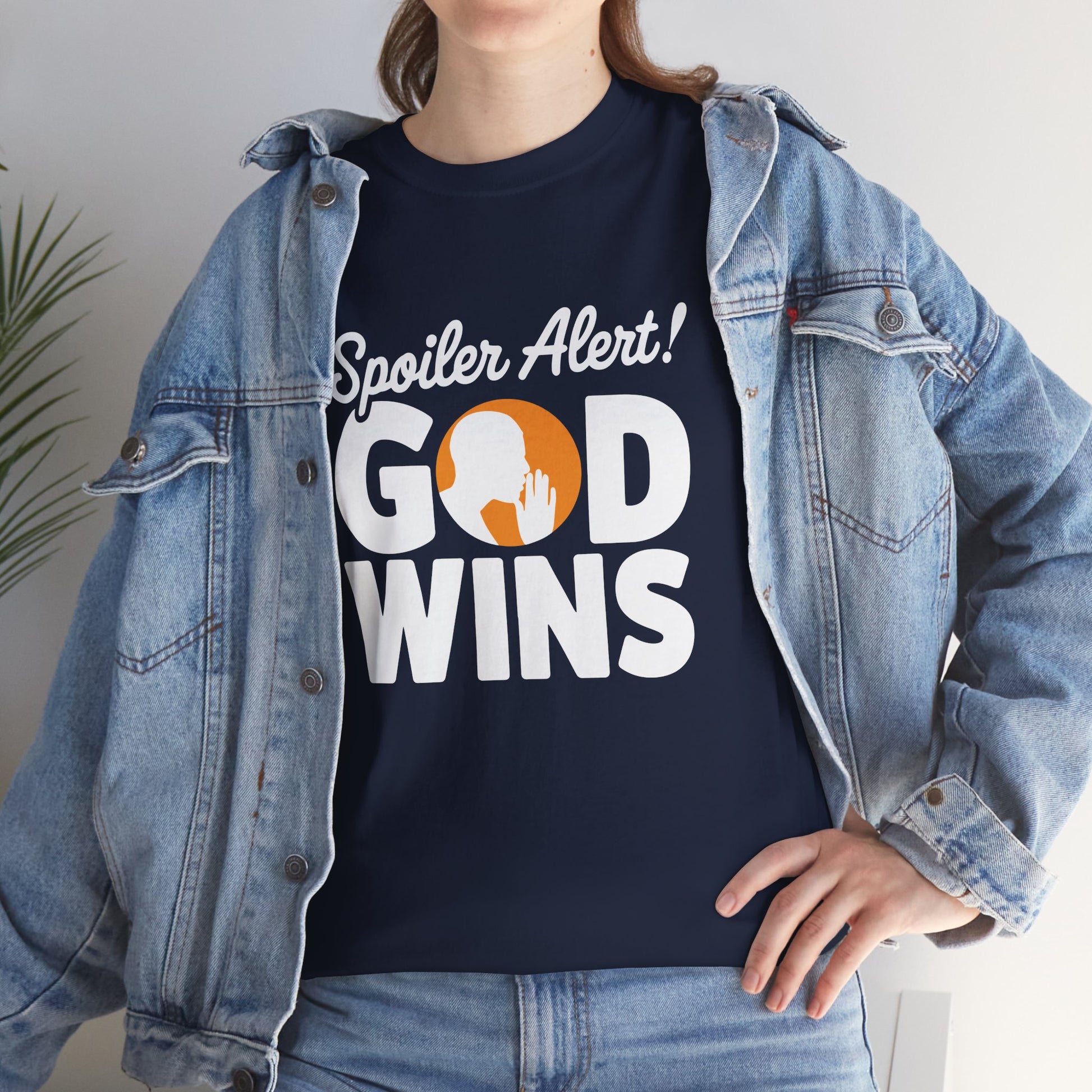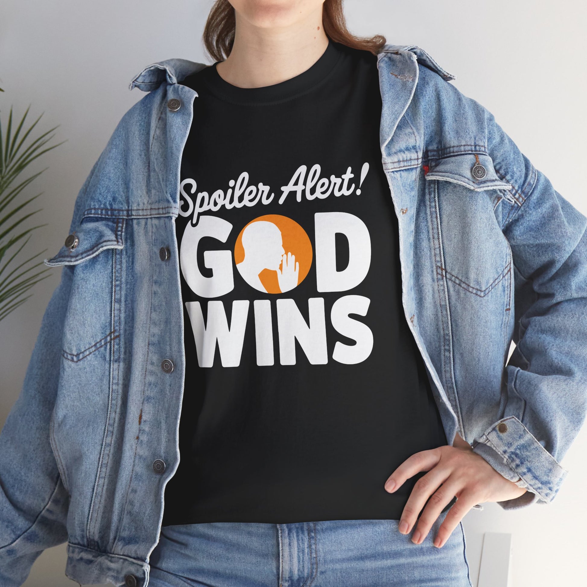 Designed to spark hope, this tee features eye-catching text that stands out, making it a great conversation starter about the ultimate triumph of good over evil. Show off your love for God’s promises and let others know who holds the final victory.