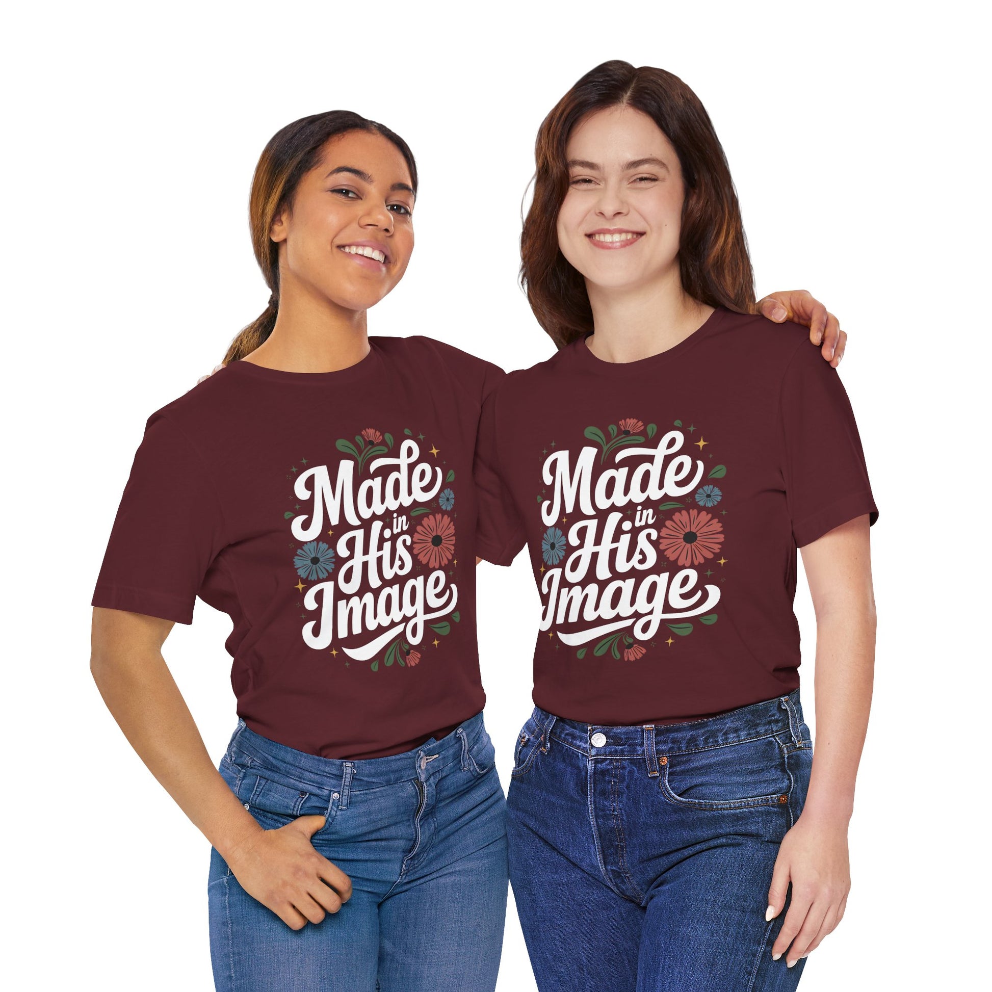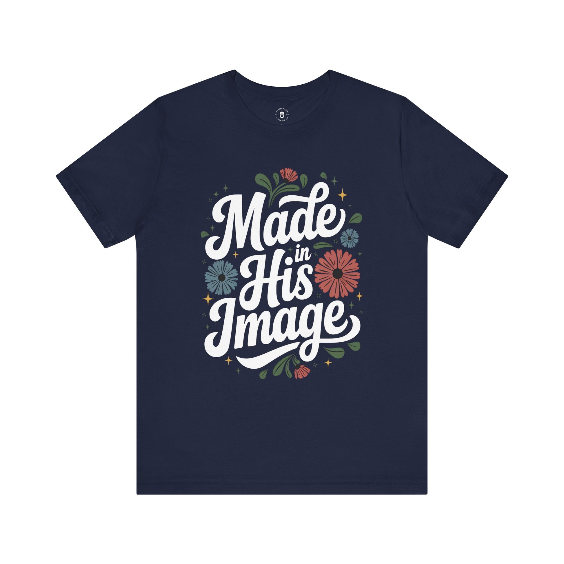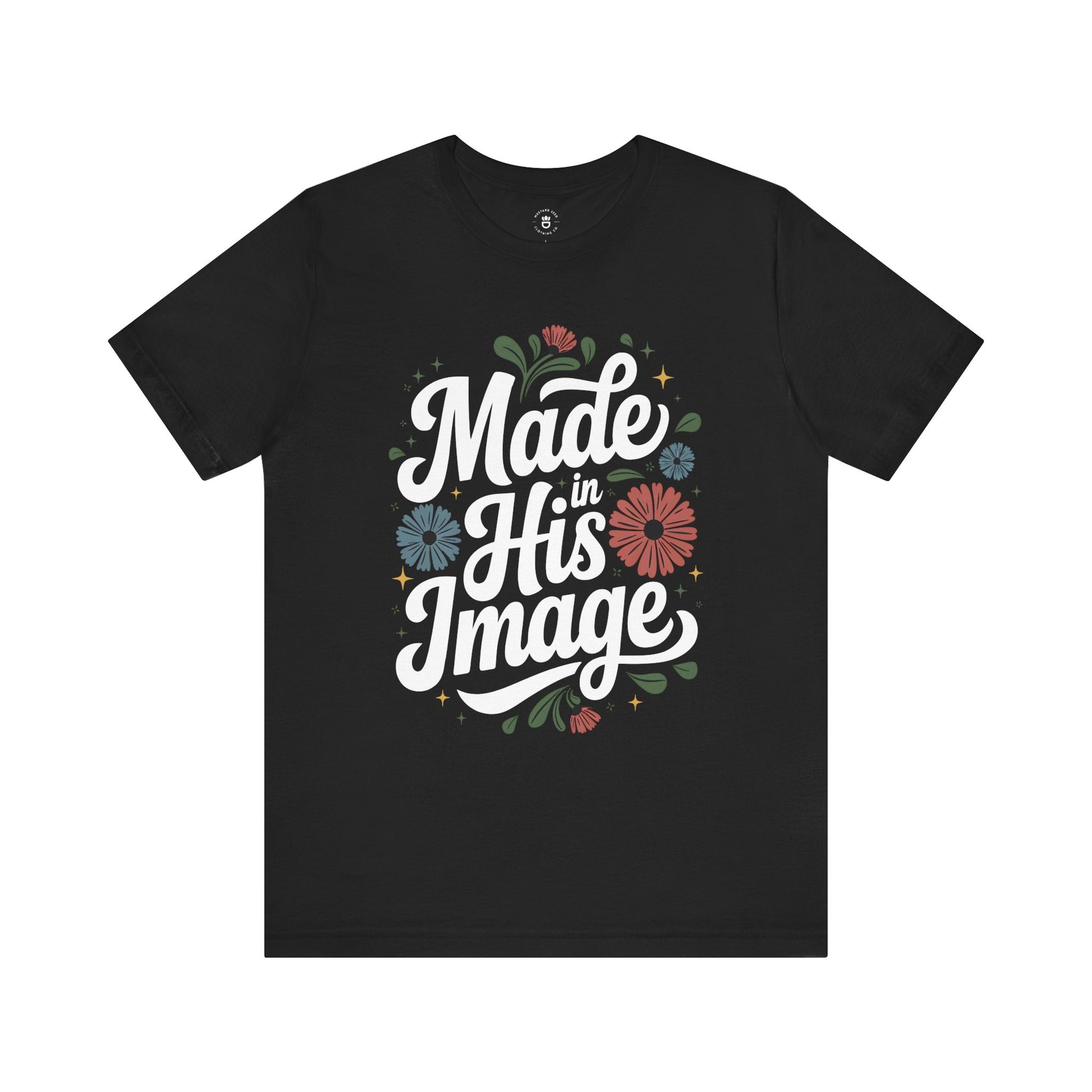 Embrace your faith and style with our "In His Image" women's t-shirt. Featuring bold script typography and delicate floral design elements, this tee beautifully blends spirituality with fashion. Perfect for everyday wear or church gatherings, it's a heartfelt reminder of your identity in Christ.