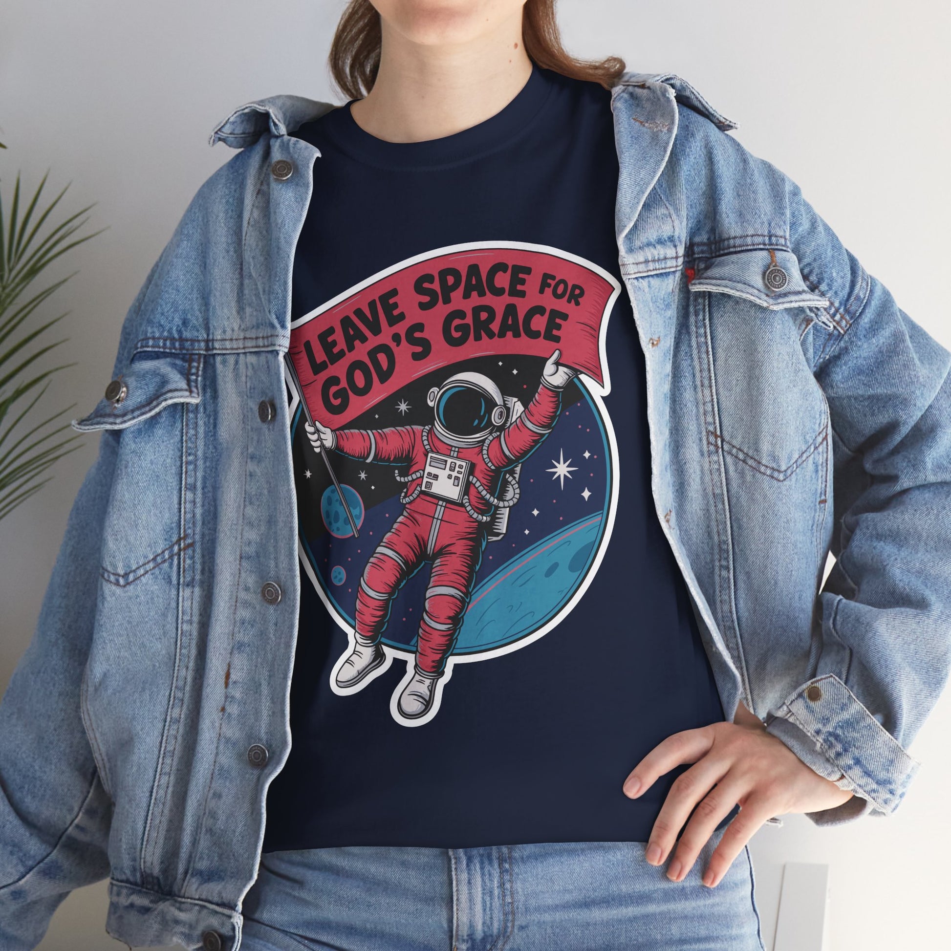 Elevate your faith with this “out of this world” tee! Featuring a stunning design of an astronaut floating in the vastness of space, this serves as a powerful reminder to trust in God's plan and make room for His grace in your life. Made from soft, high-quality fabric, it's perfect for sharing your faith in style and comfort.