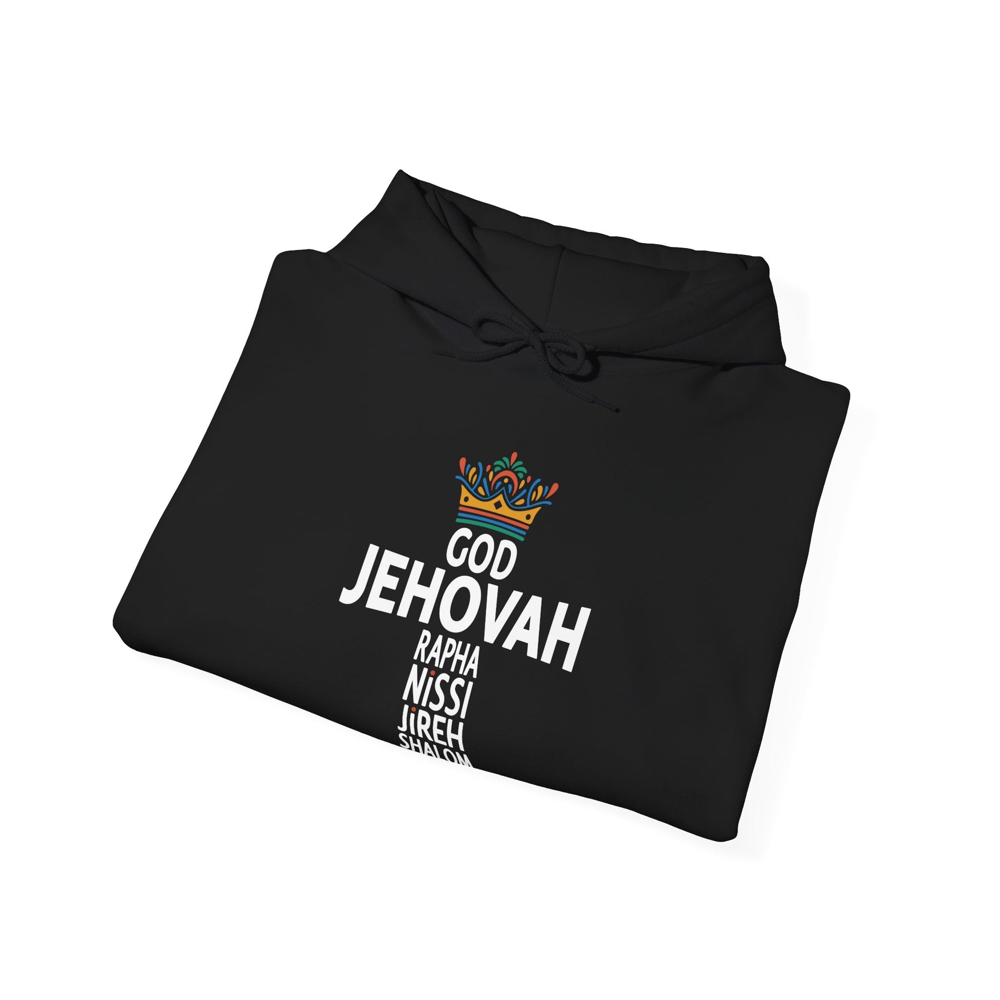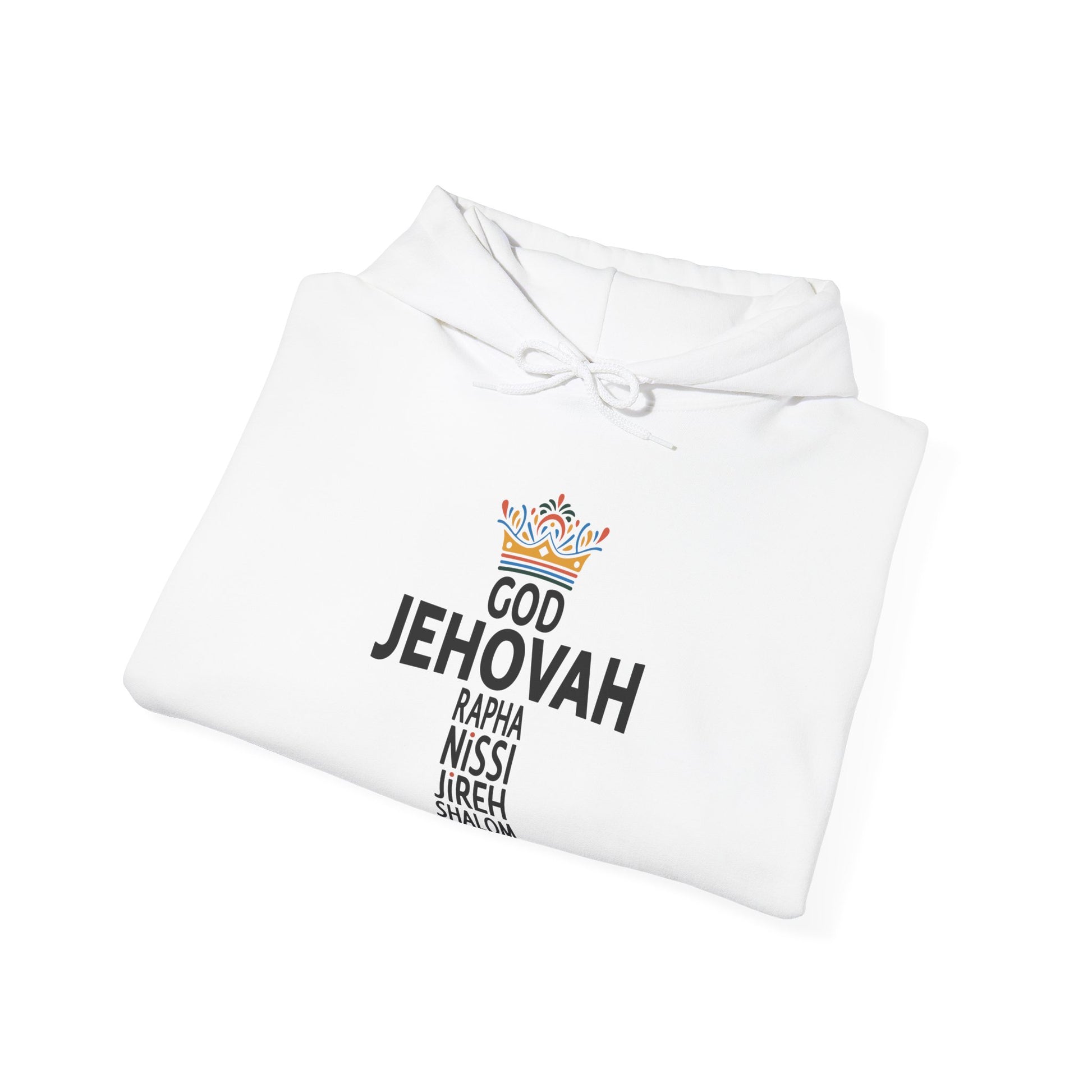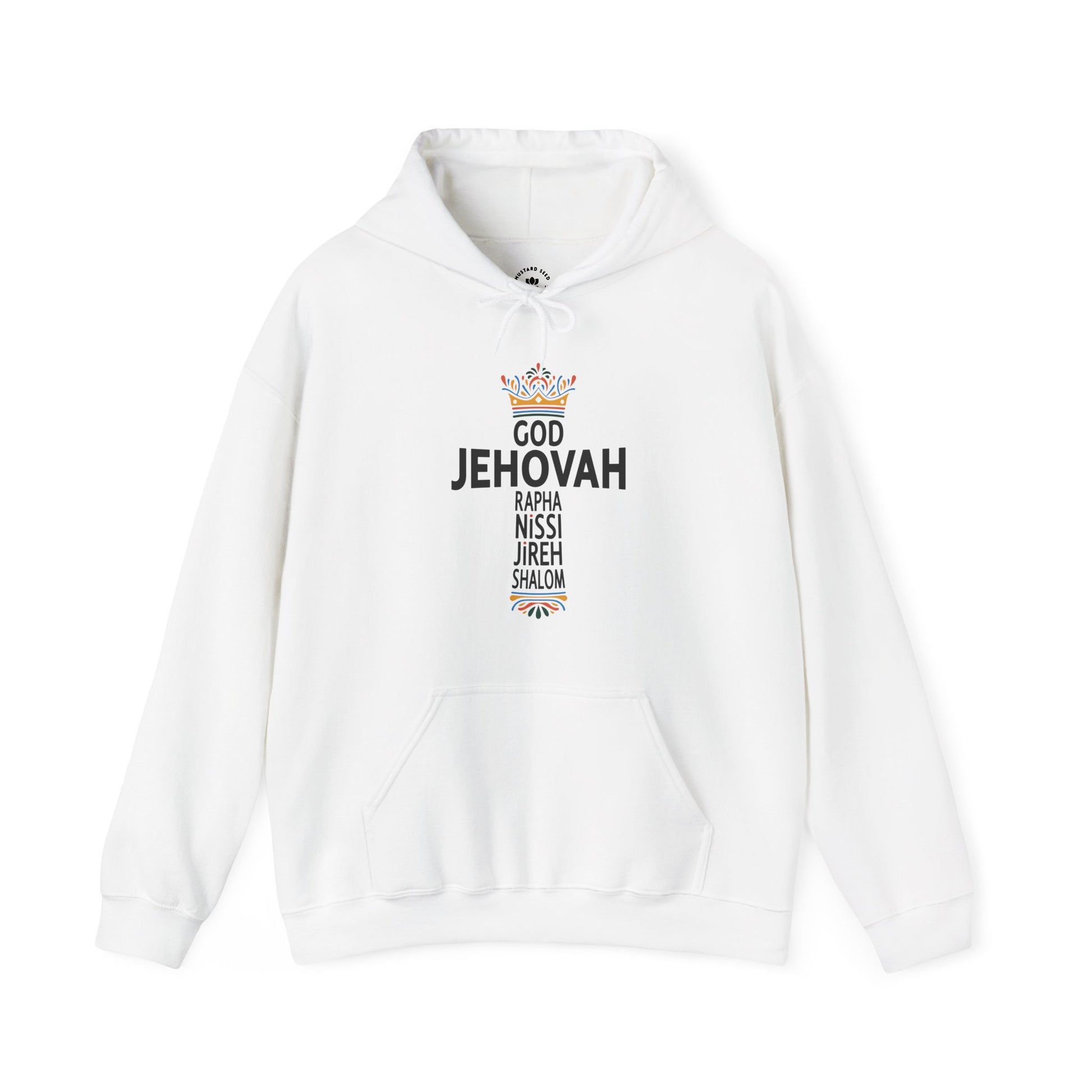 Celebrate your faith with this beautifully designed hoodie featuring the various Hebrew titles for God, arranged in the shape of a decorative cross. Each name is a testament to God’s divine strength and provision for His people.