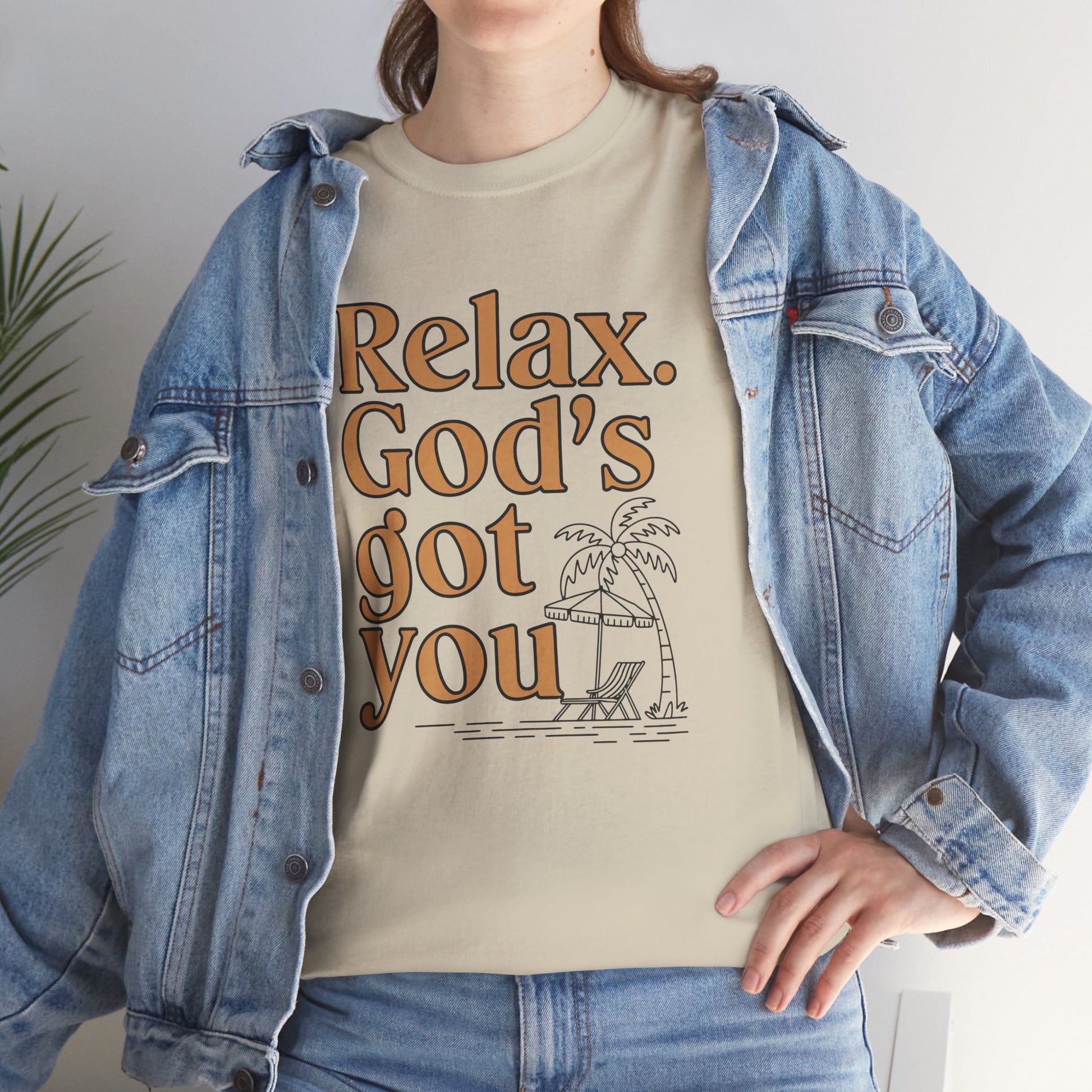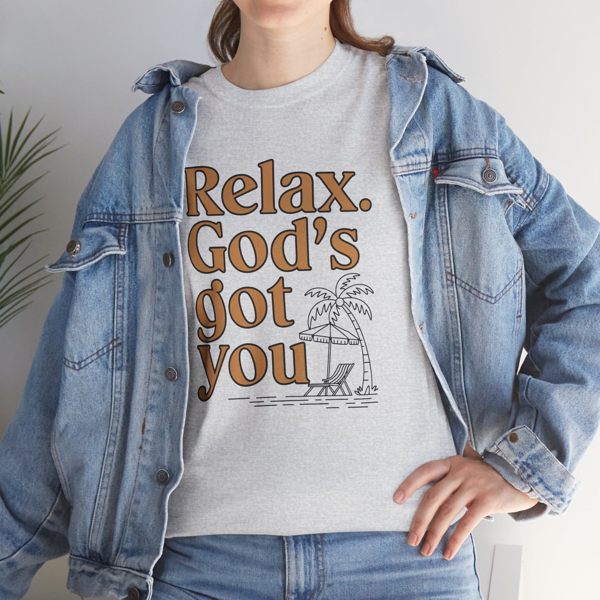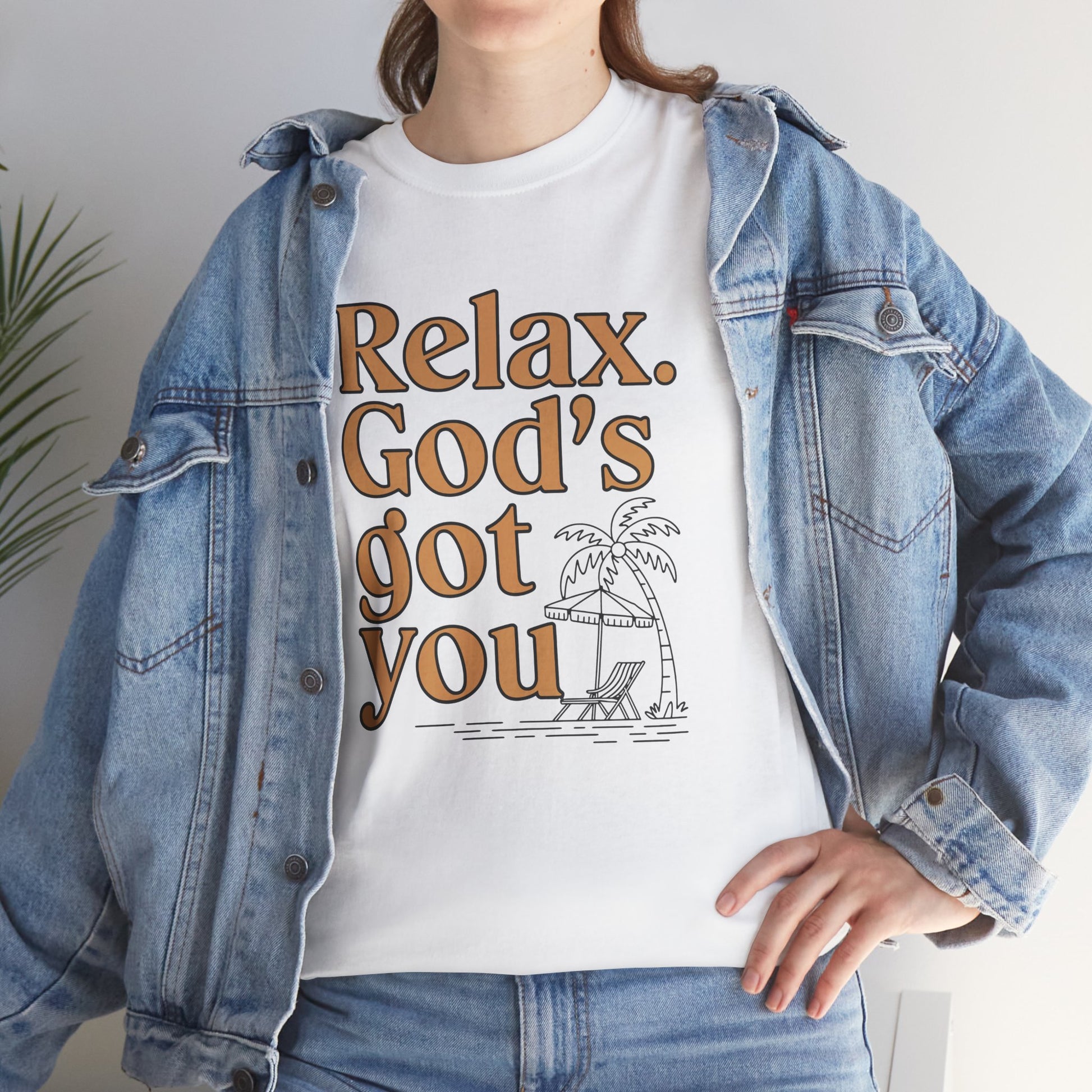 Encourage yourself and others to find peace in God with this vacation themed T-shirt. This design features a serene beach scene, reminding you to rest easy and trust in His plan. Wear it as a daily reminder that God’s got you covered.