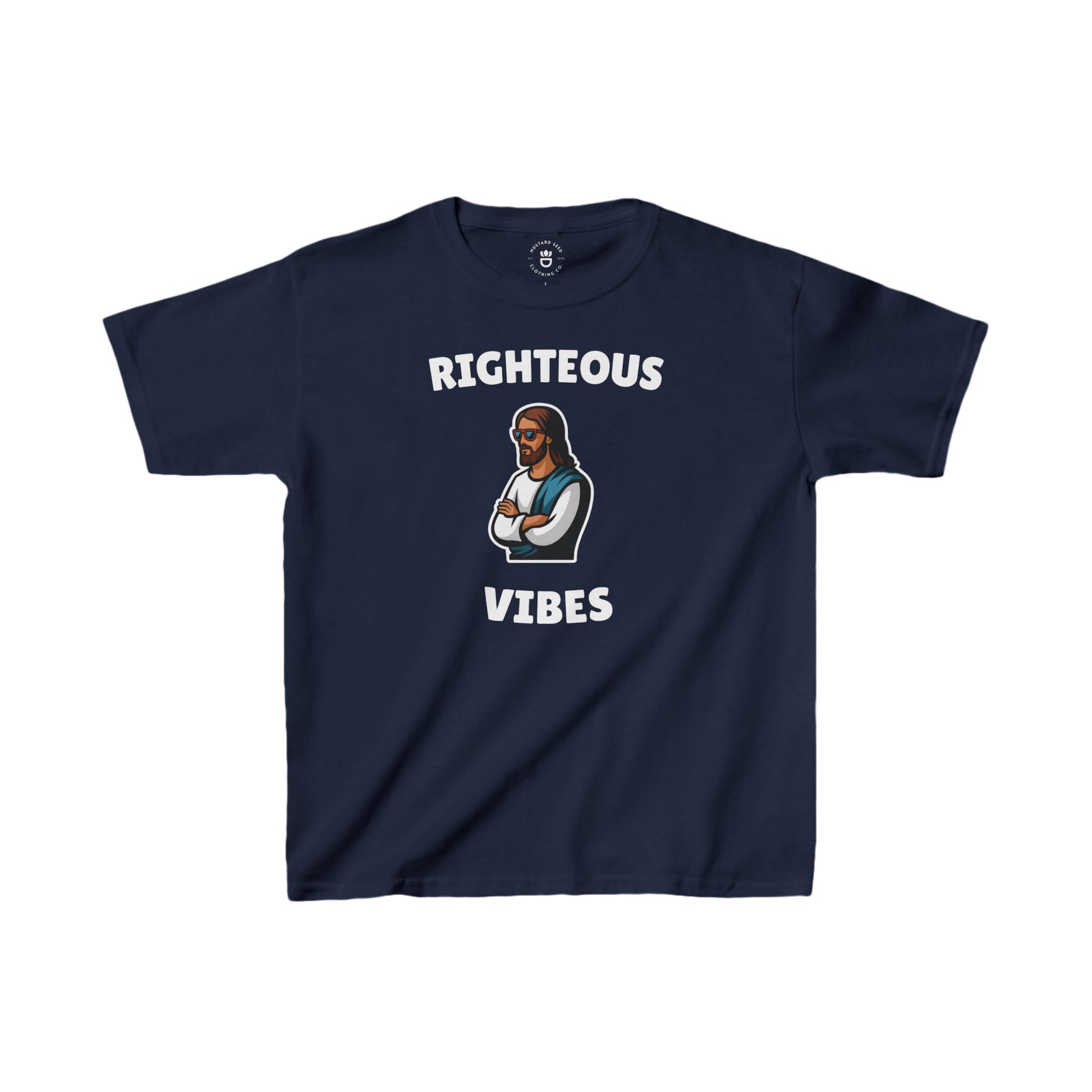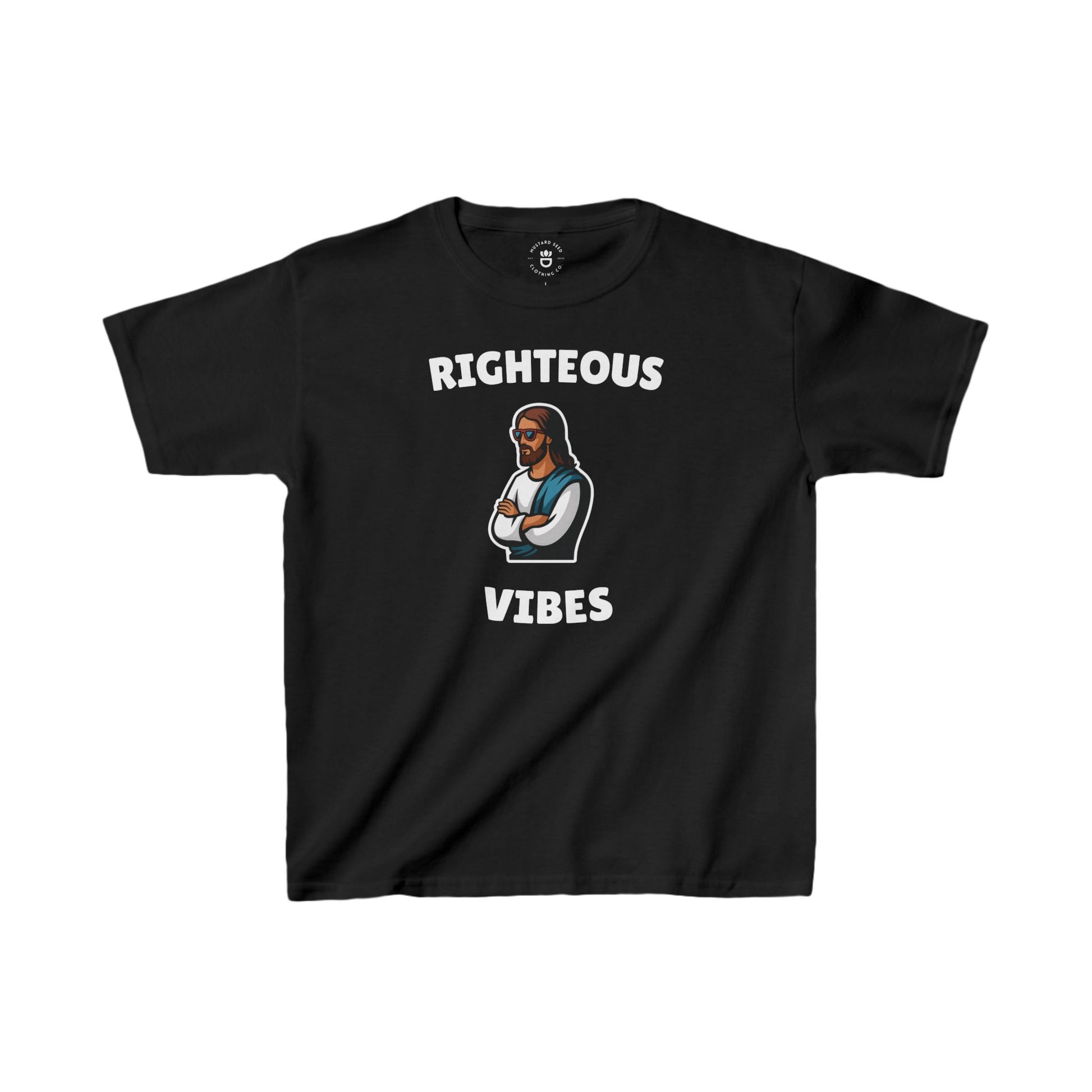 Get ready to spread some laughter with our "Righteous Vibes" tee! This fun and playful design features a cool image of Jesus with his arms crossed and stylish sunglasses, perfect for little ones who want to share their faith with a smile. Let your child rock their righteous vibes while reminding everyone that faith can be fun!
