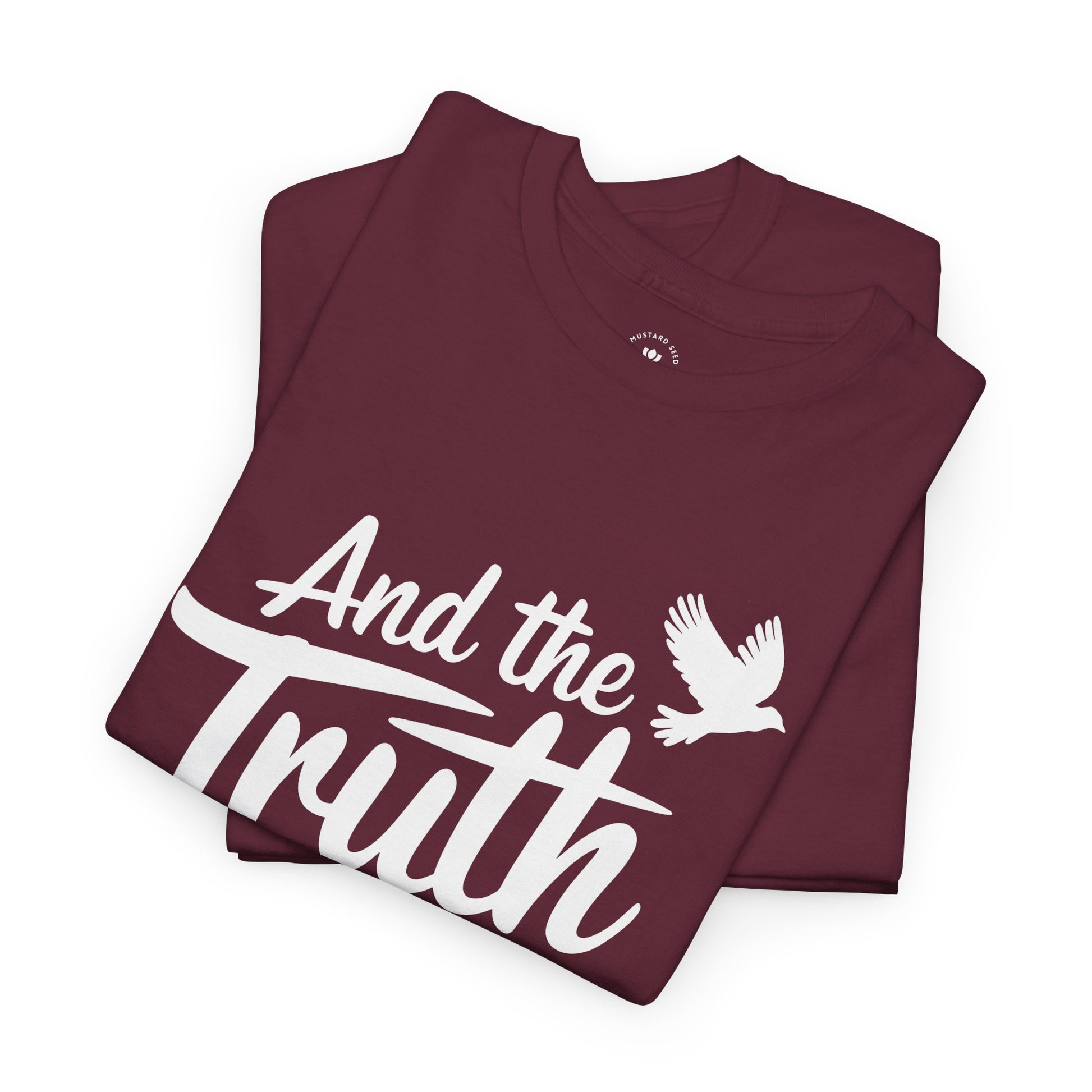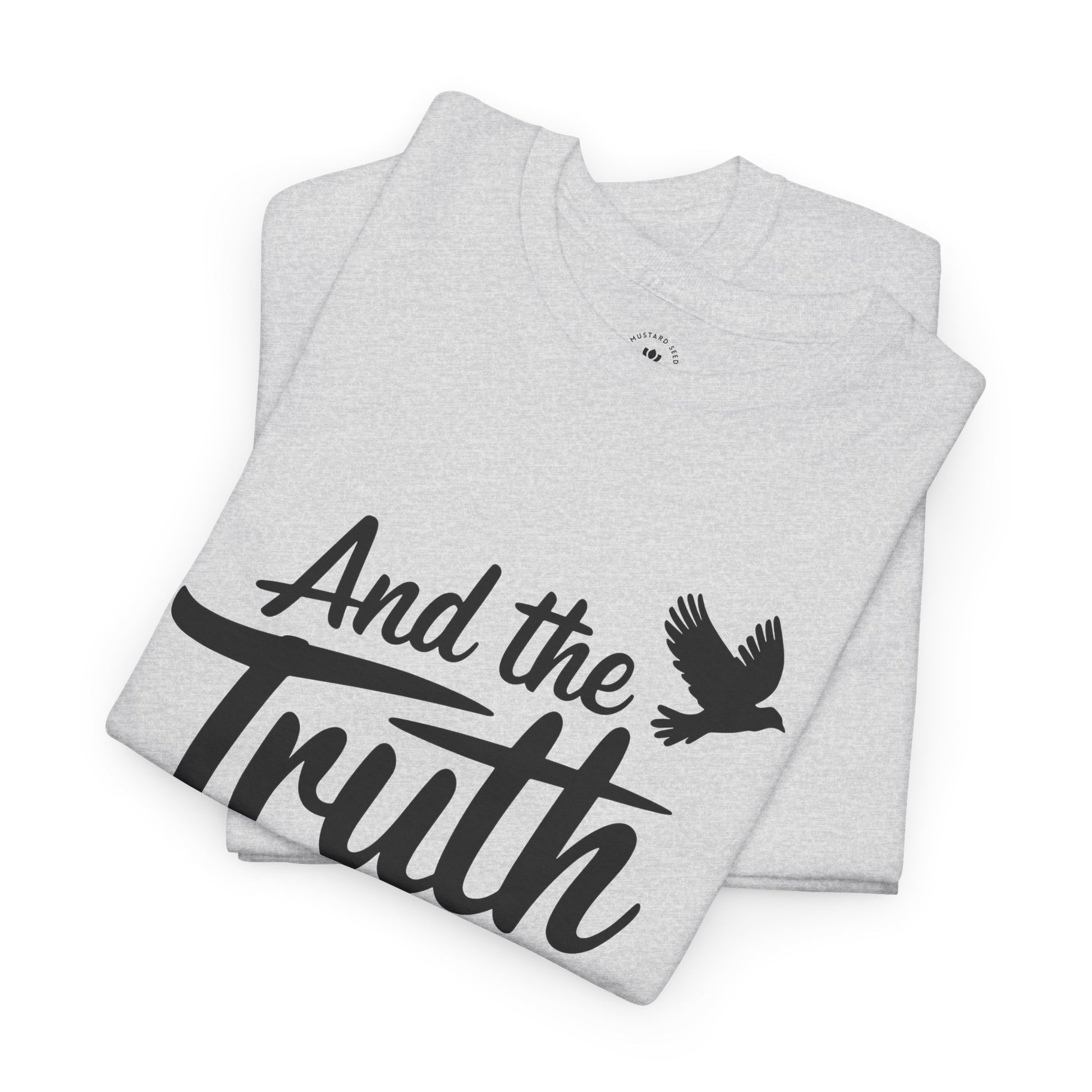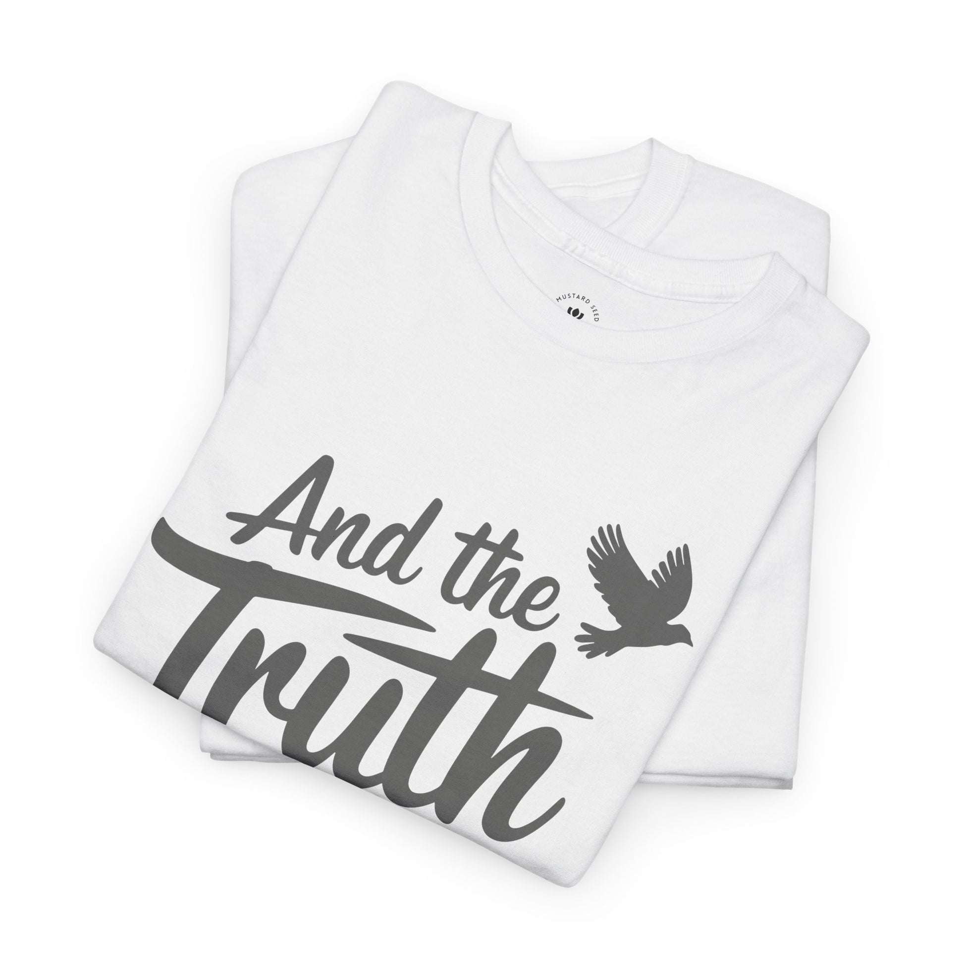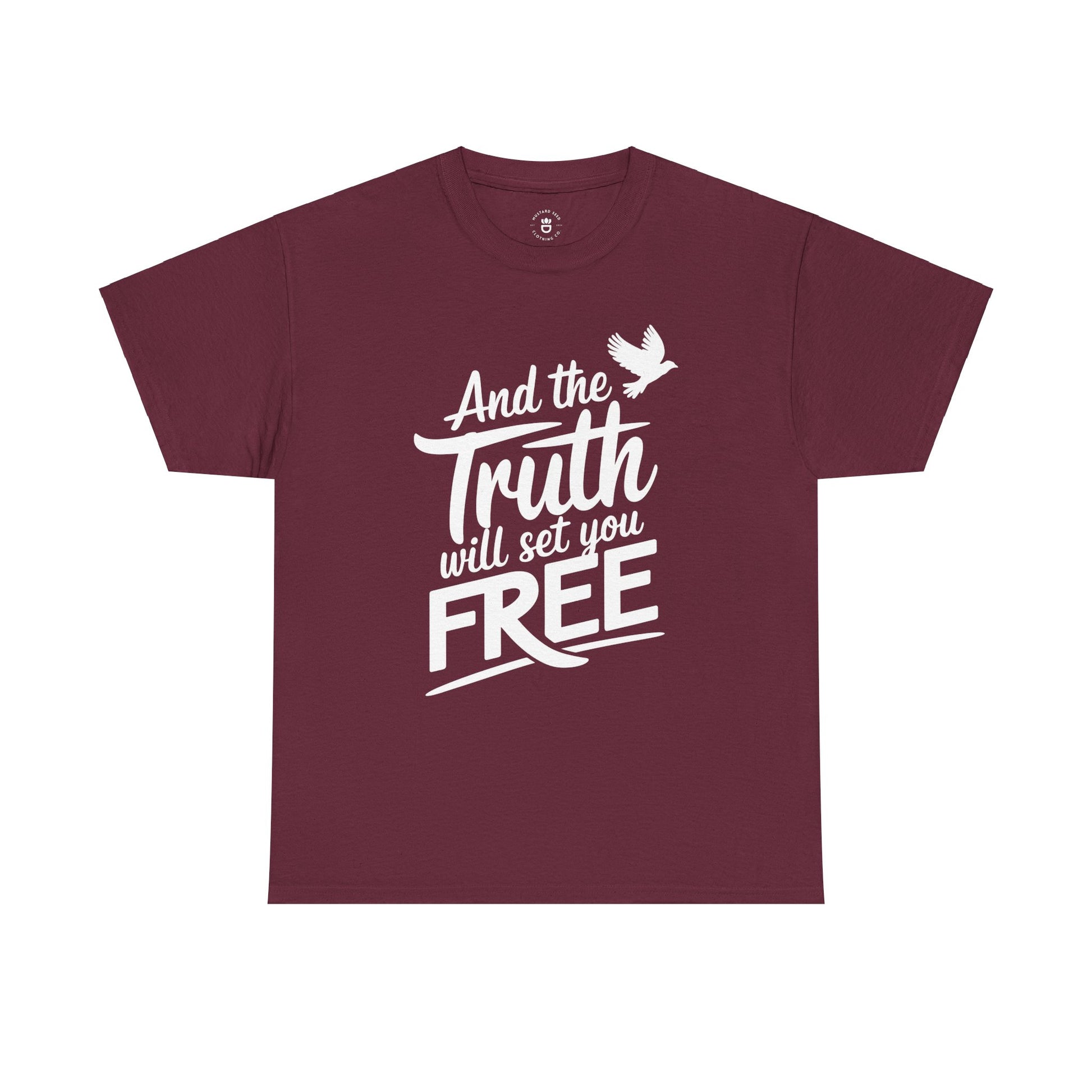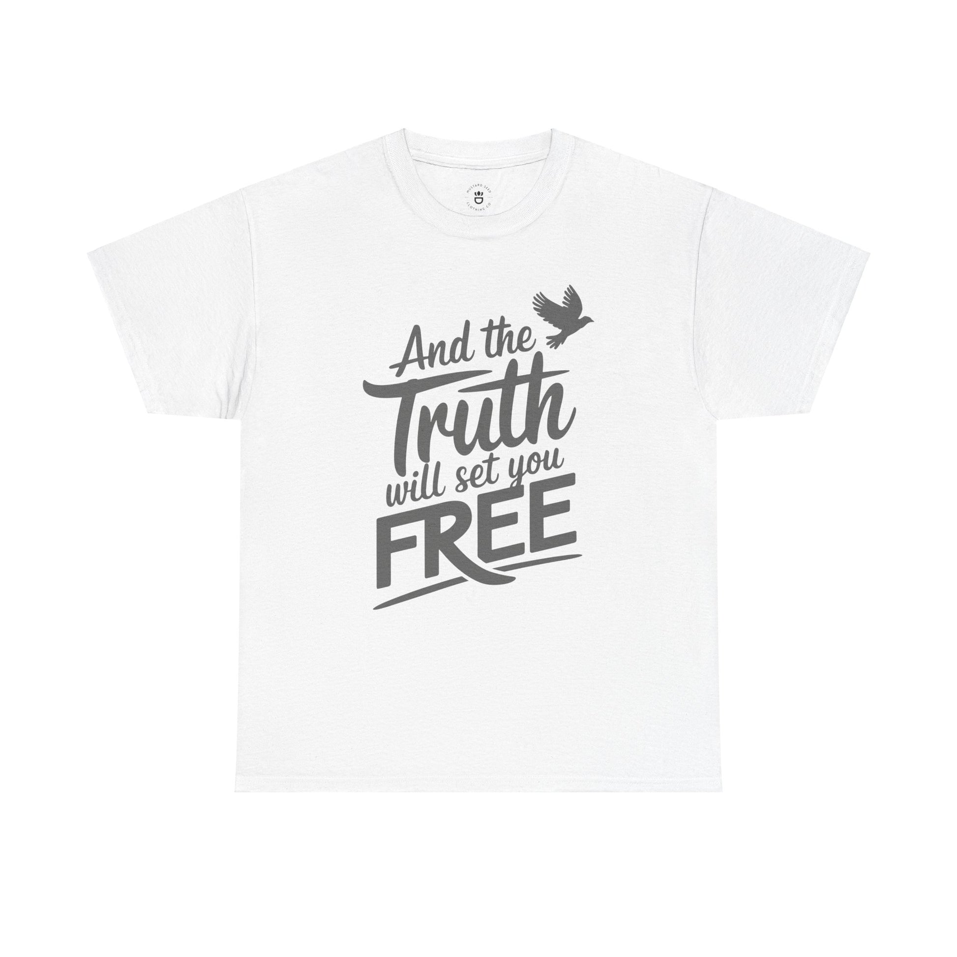 This t-shirt proclaims a timeless promise: "And the truth will set you free." Featuring a graceful silhouette of a bird in flight, the design captures the essence of freedom and faith. This tee is perfect for sharing the message of hope and liberation found in the truth of God’s words.