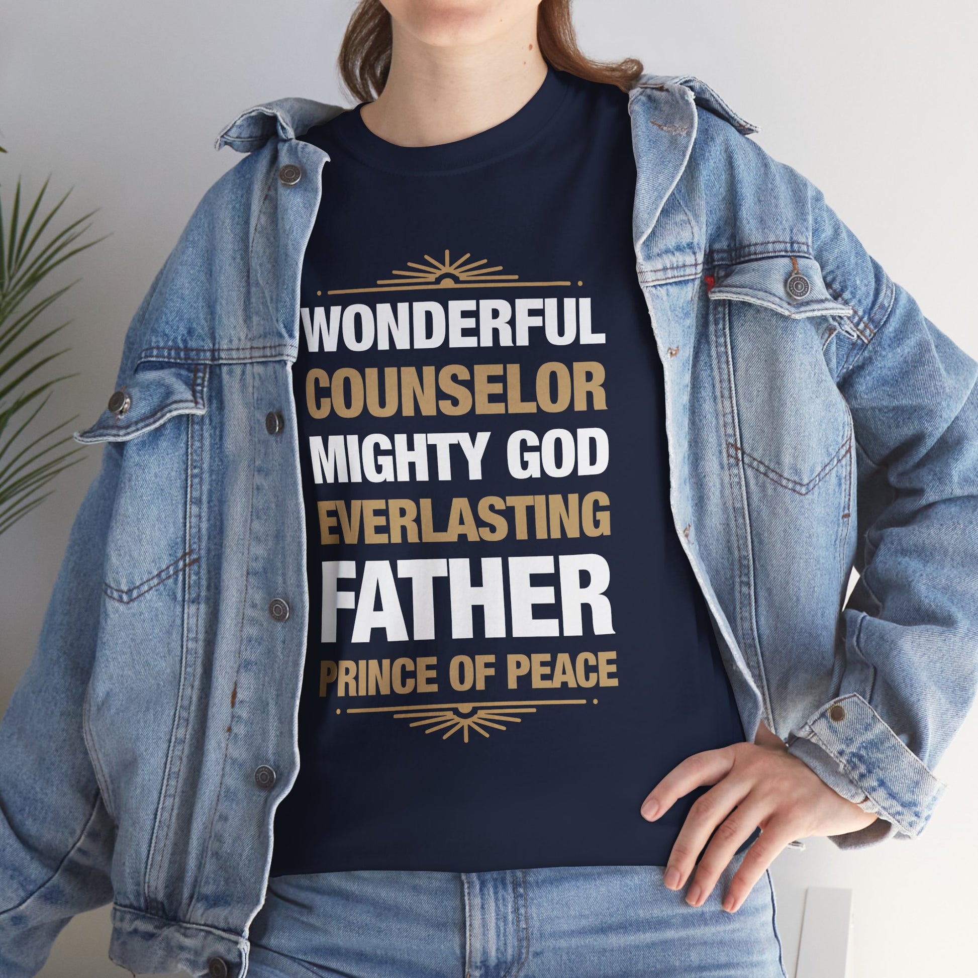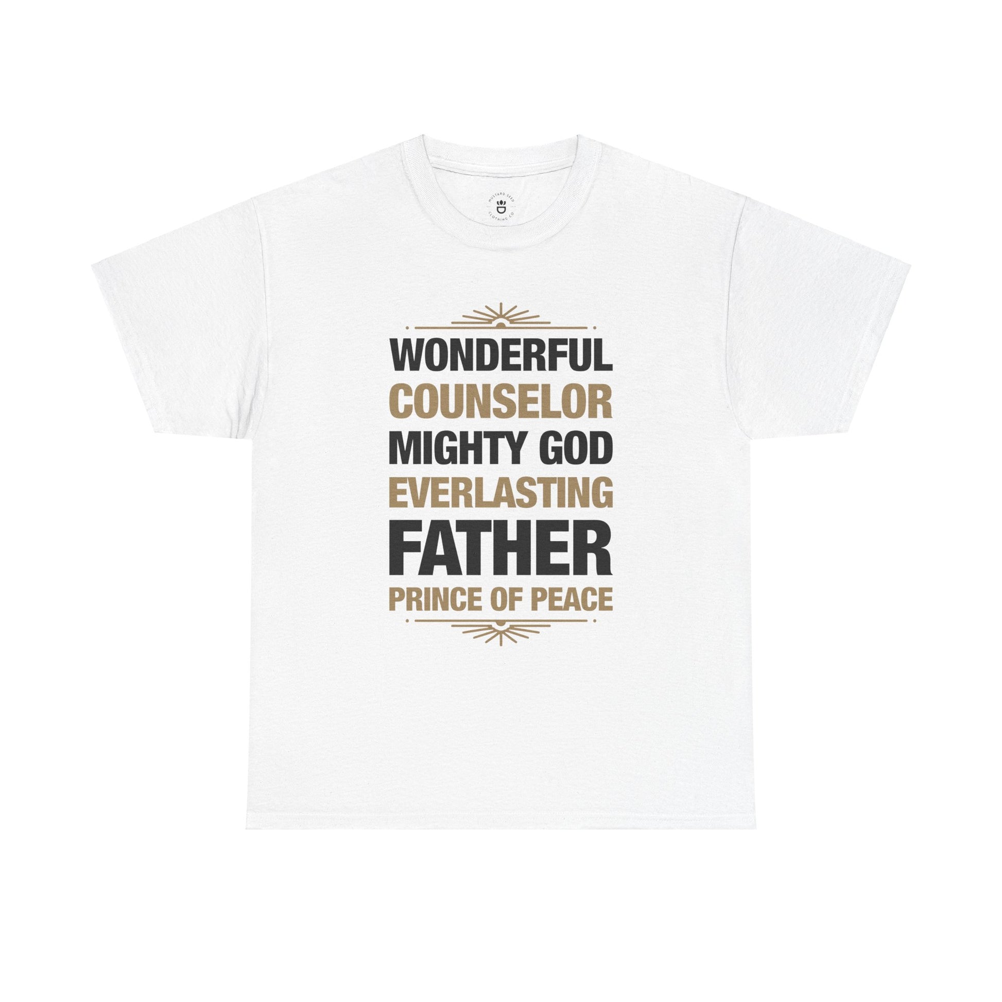 Celebrate your faith with this inspiring t-shirt, featuring the powerful titles of Jesus from the famous prophecy in Isaiah 9. Designed to spark conversations and share the message of hope in Christ, this shirt combines bold typography with timeless truth. Wear it as a declaration of your faith and a reminder of the greatness of our Savior.