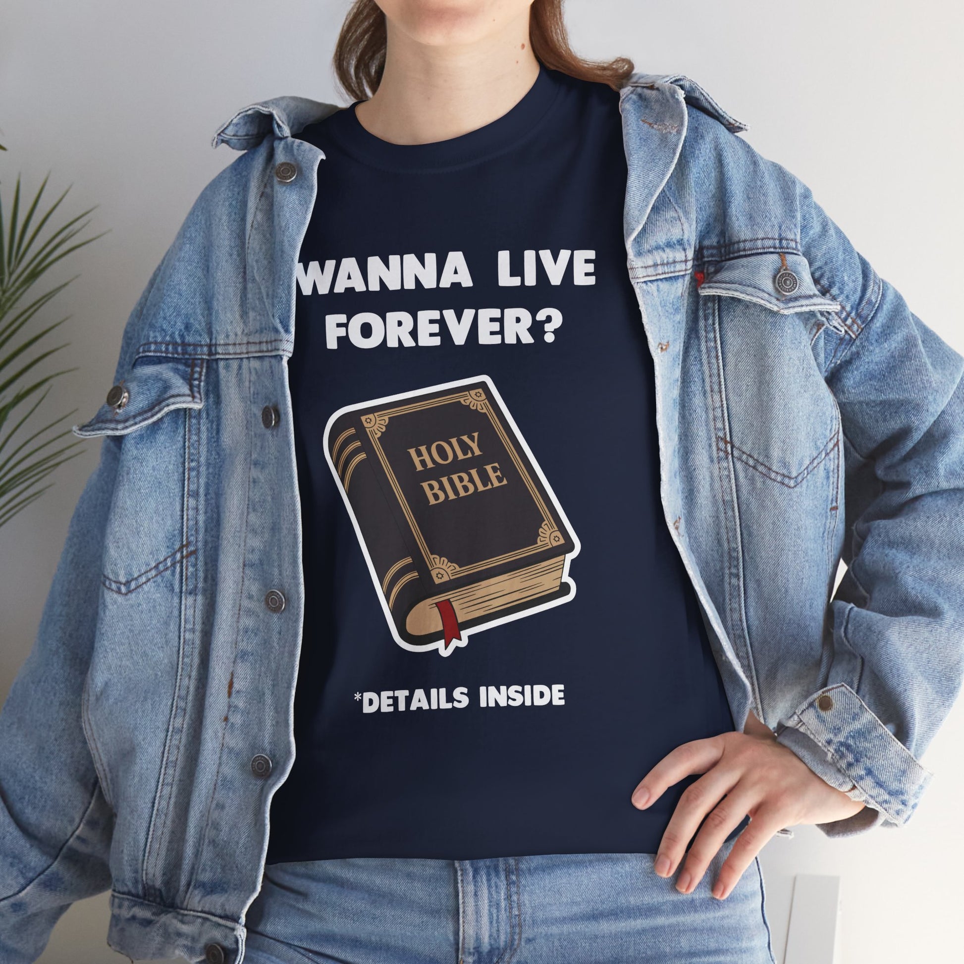 "Wanna Live Forever?" Unisex Heavy Cotton Tee