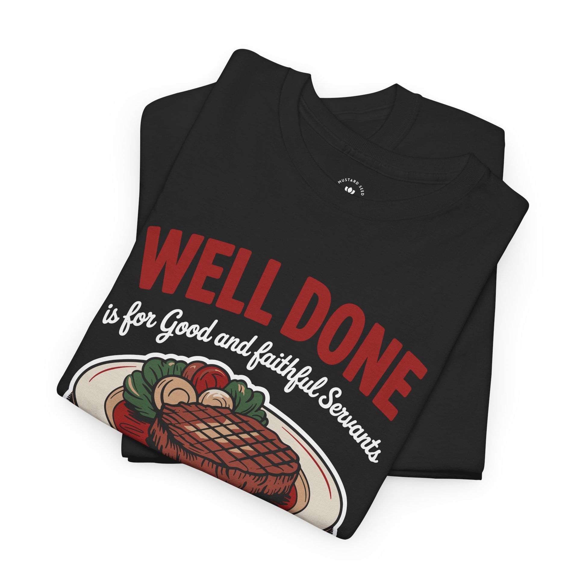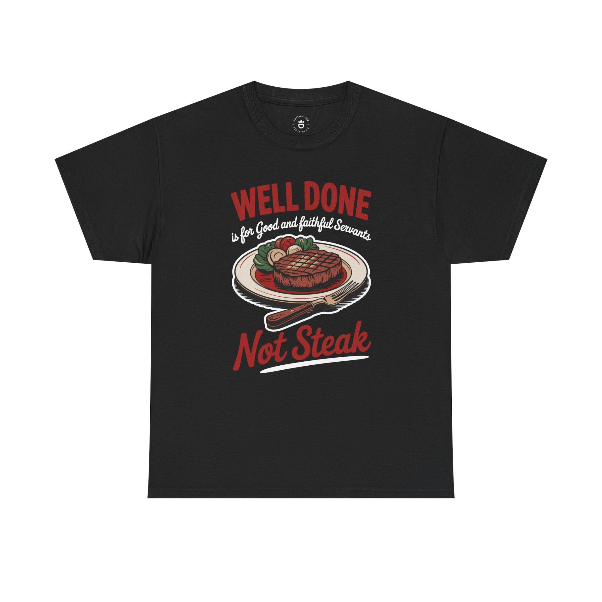 Serve up some biblical wisdom with a side of humor in this hilarious t-shirt! Featuring a mouthwatering steak dinner, this tee is perfect for believers who like their faith strong and their steak medium-rare. Made from soft, breathable fabric, it’s great for church gatherings, BBQs, or just sharing a good laugh. Wear your faith boldly—just don’t overcook it!